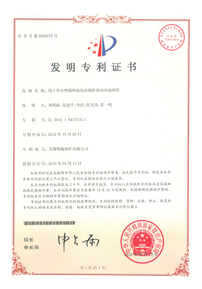 • 6. 用于中小型循環流化床鍋爐的風冷放渣管